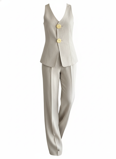 Cotton Linen Two-Piece Set for Women – Beige Matching Top & Pants Outfit